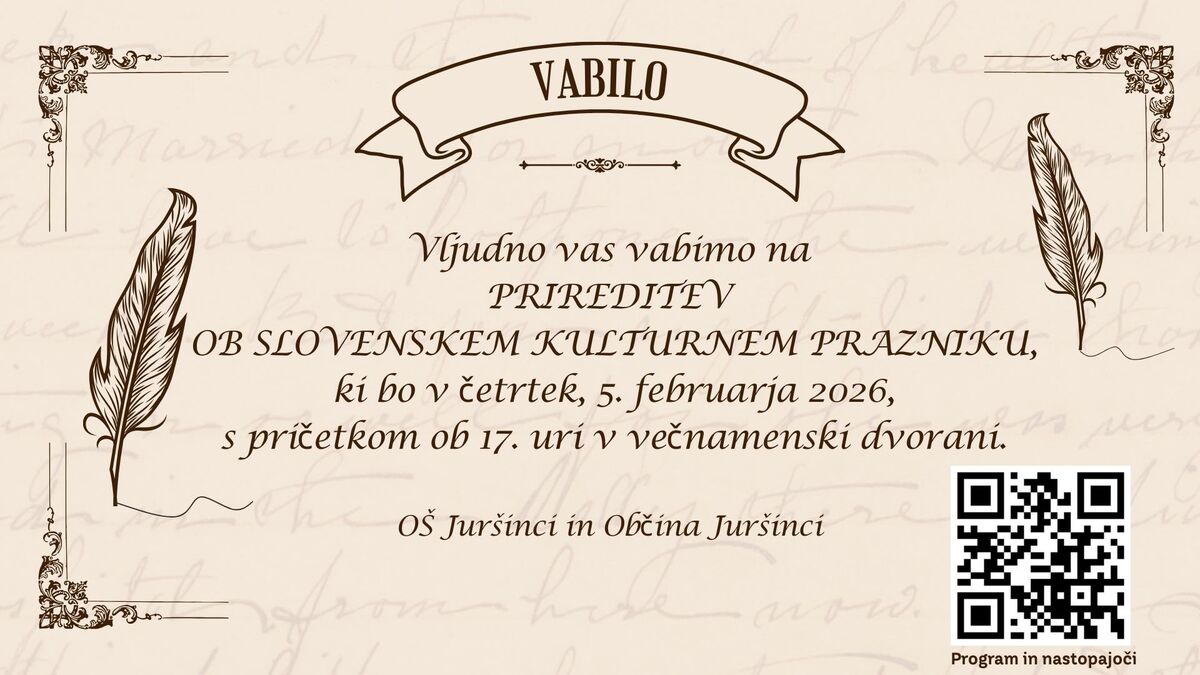 PRIREDITEV OB SLOVENSKEM KULTURNEM PRAZNIKU; četrtek, 5.2.2026 ob 17. uri; Večnamenska športna dvorana